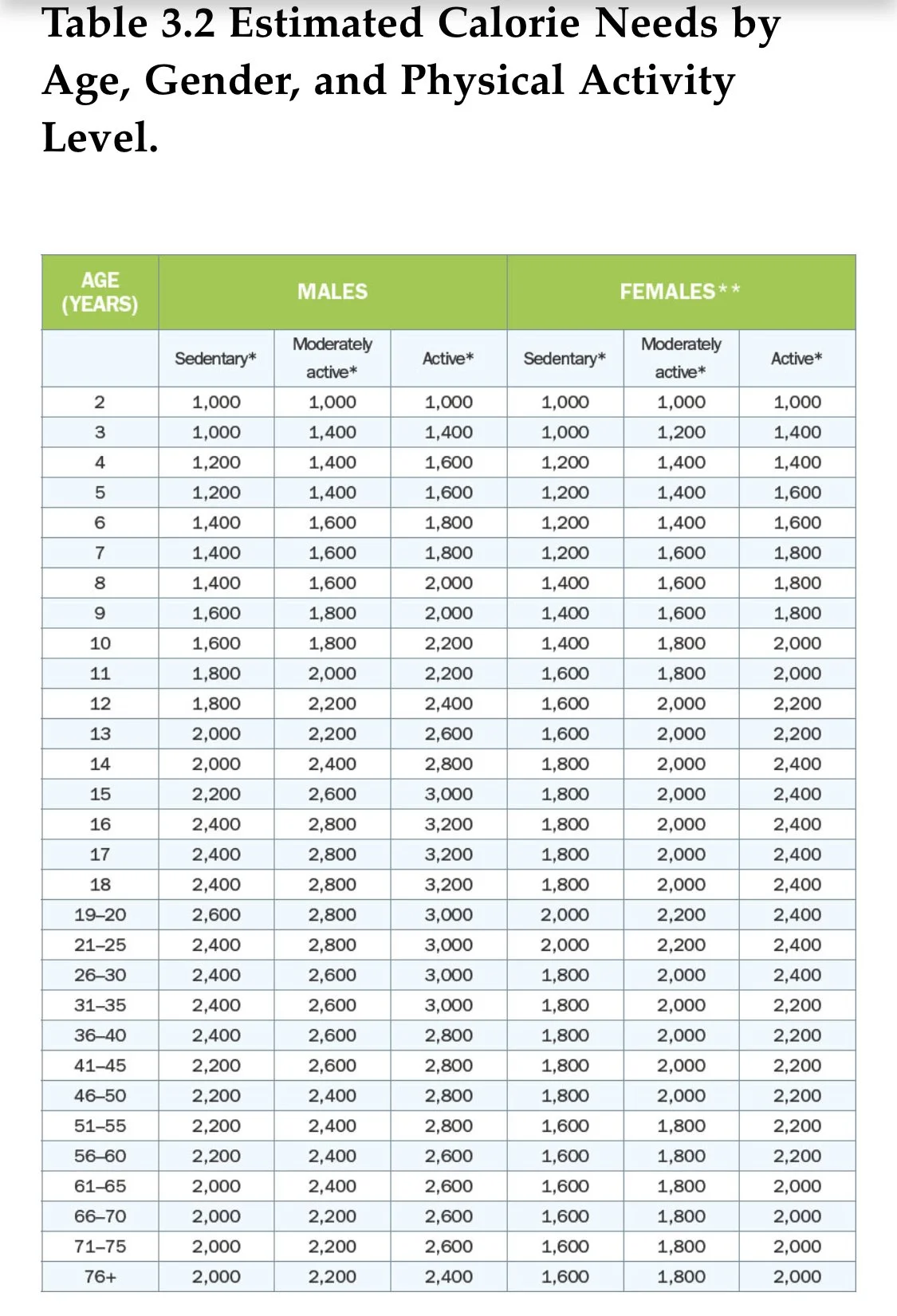 I assure you my client is not a sedentary 2-3 year old!😂 I mean, this shit is so off its almost comical! As you can see adults daily needs are much higher than 1000-1200 calories even factoring in a calorie deficit specific to individual characteristics. Which even then, on average is 200-300 less than an individuals maintenance calories. (Which I can calculate for free if you are unsure)